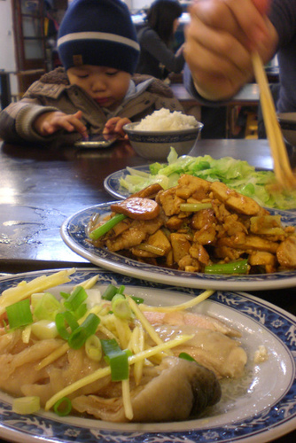 週末晚上高朋滿座早在預料之中,幸好熱炒的翻桌率是豬排飯的三倍不止,等了20分鐘就有空桌!