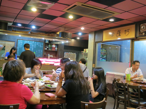 阿姊阿妹怕大肚婆吃到一半突然臨盆,所以遠從土城、古亭跑到天母與我們會合,原本計畫帶她們去sogo裡面吃【杏子豬排】,結果店家說要等一個半小時!不想把晚餐變宵夜,突然想起附近有家光顧過的熱炒店【阿薩姆】還不賴,走去碰碰運氣好囉!