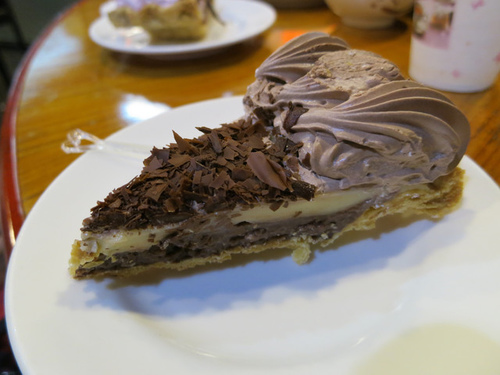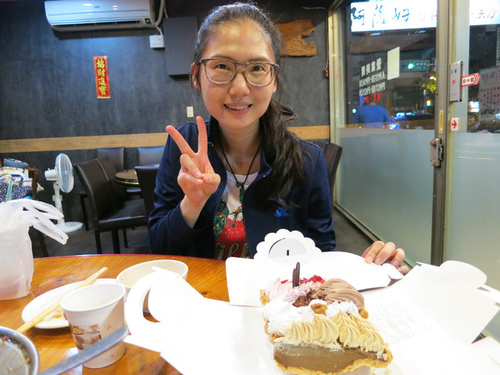 以下是自備的甜點,是我們家都很愛的薔薇派(才叔說味道很怪,當下引發三姊妹圍剿),高中時代很常到一中街外帶回家,摩卡口味則從以前就是我的最愛。